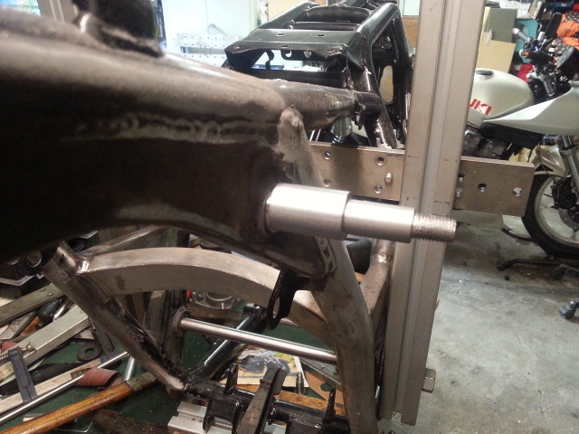 ZRX Schwinge angepasst....sitzt jetzt schön mittig und die Federbeine stehen auch schön gerade