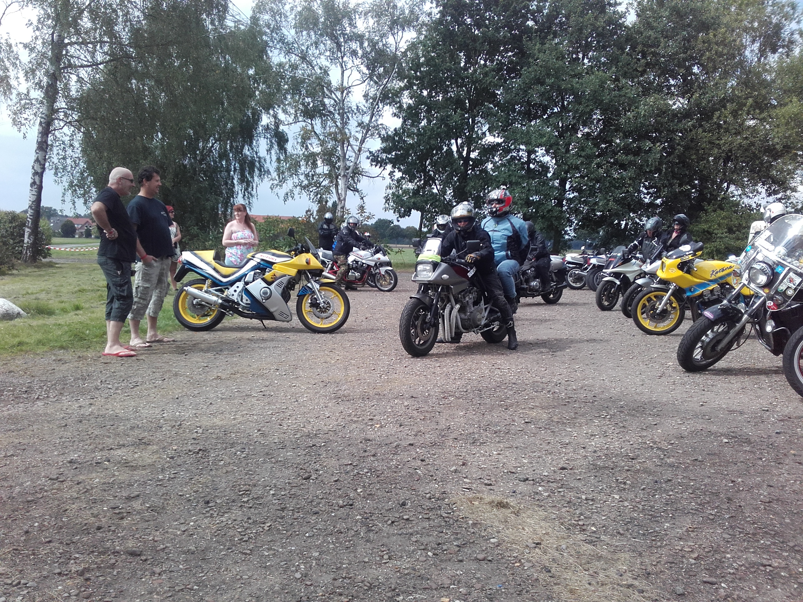verdammt, hat wieder nich geklappt mit dem komplett trockenen Katanatreffenwochenende seit 2012, kurz nach dem abrollen vom Platz ein Regenschauer und 15Km nasse Straße.