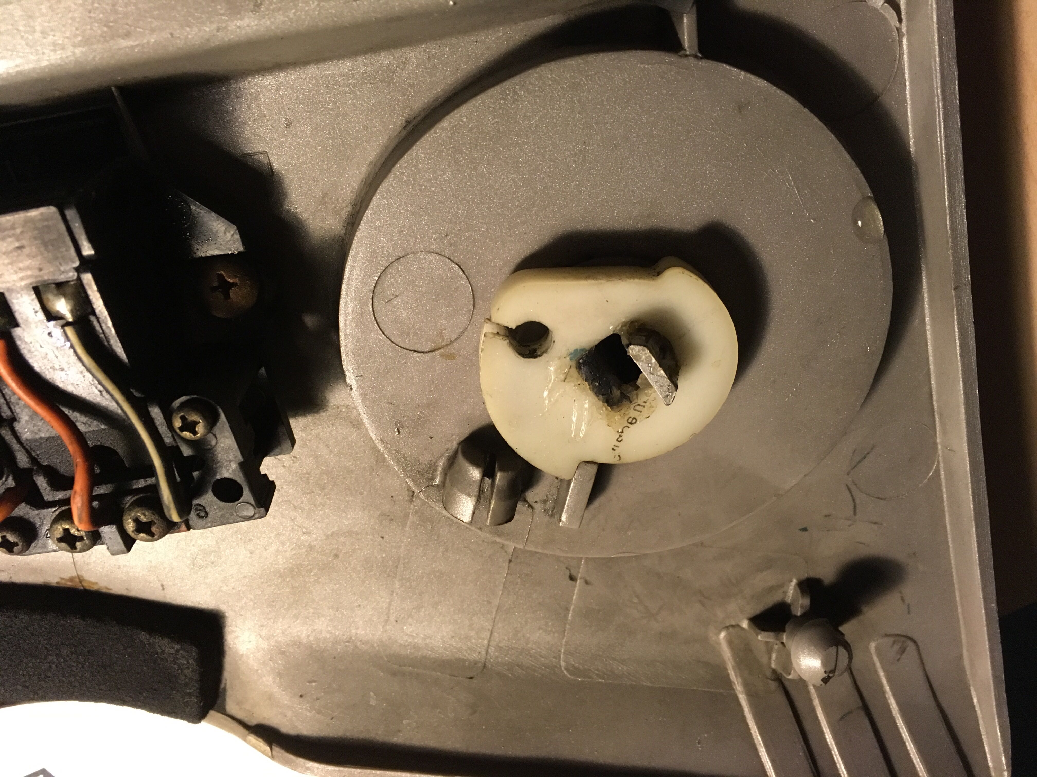 Ich vermute das der Chokeknopf an den Rastnasen in der Zugaufnahme gebrochen ist (bekanntes Problem), und der Vorbesitzer hier etwas gefummelt hat, dass der Knopf wieder im Seitendeckel hält!