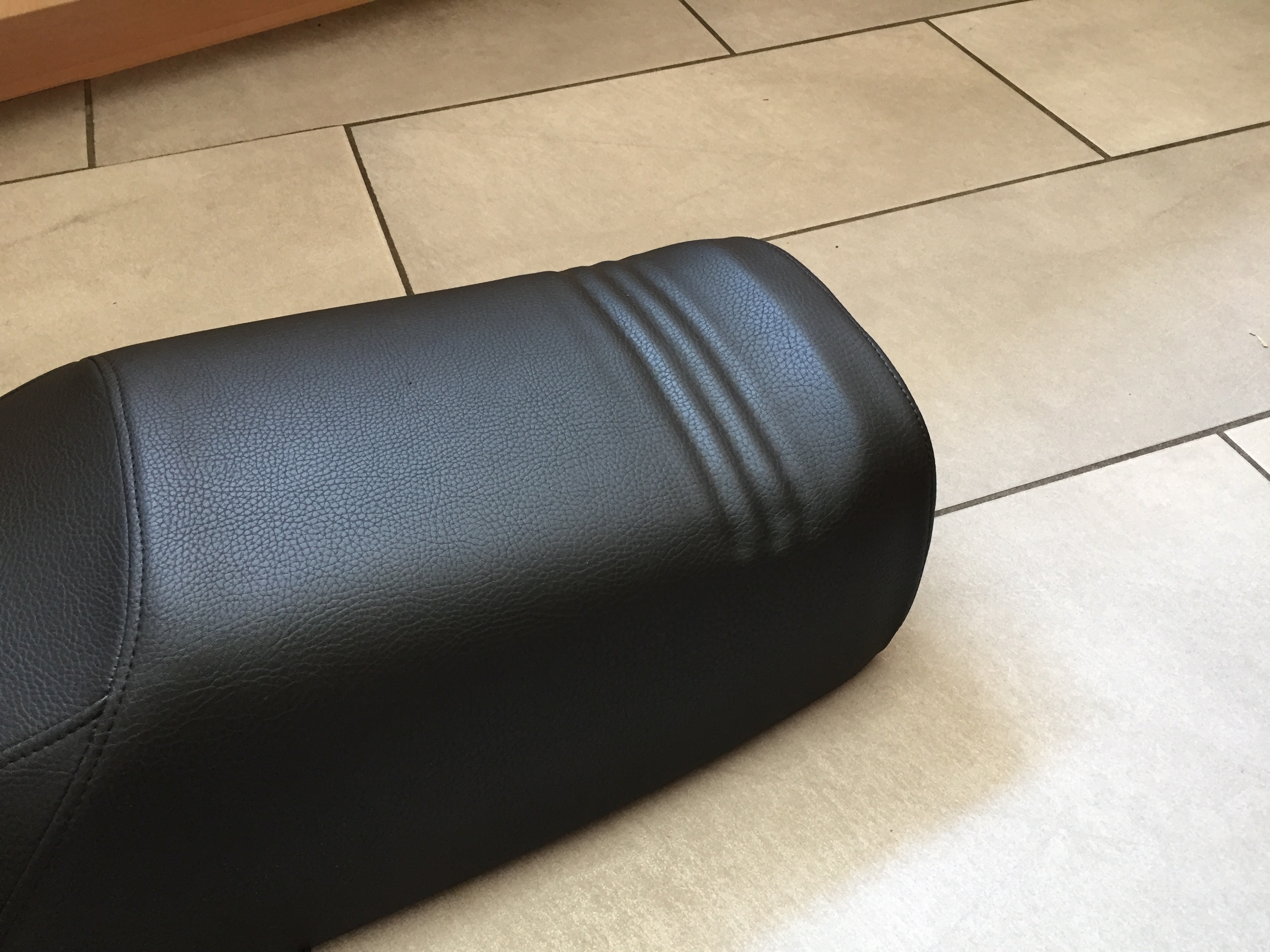 Meine alte original Sitzbank hatte ich noch im Keller eingelagert. Aber der Sitzbezug war doch nicht mehr so schön, wie ich dachte. Darum musste mal wieder der Sattler meines Vertrauens herhalten und die Bank neu beziehen.