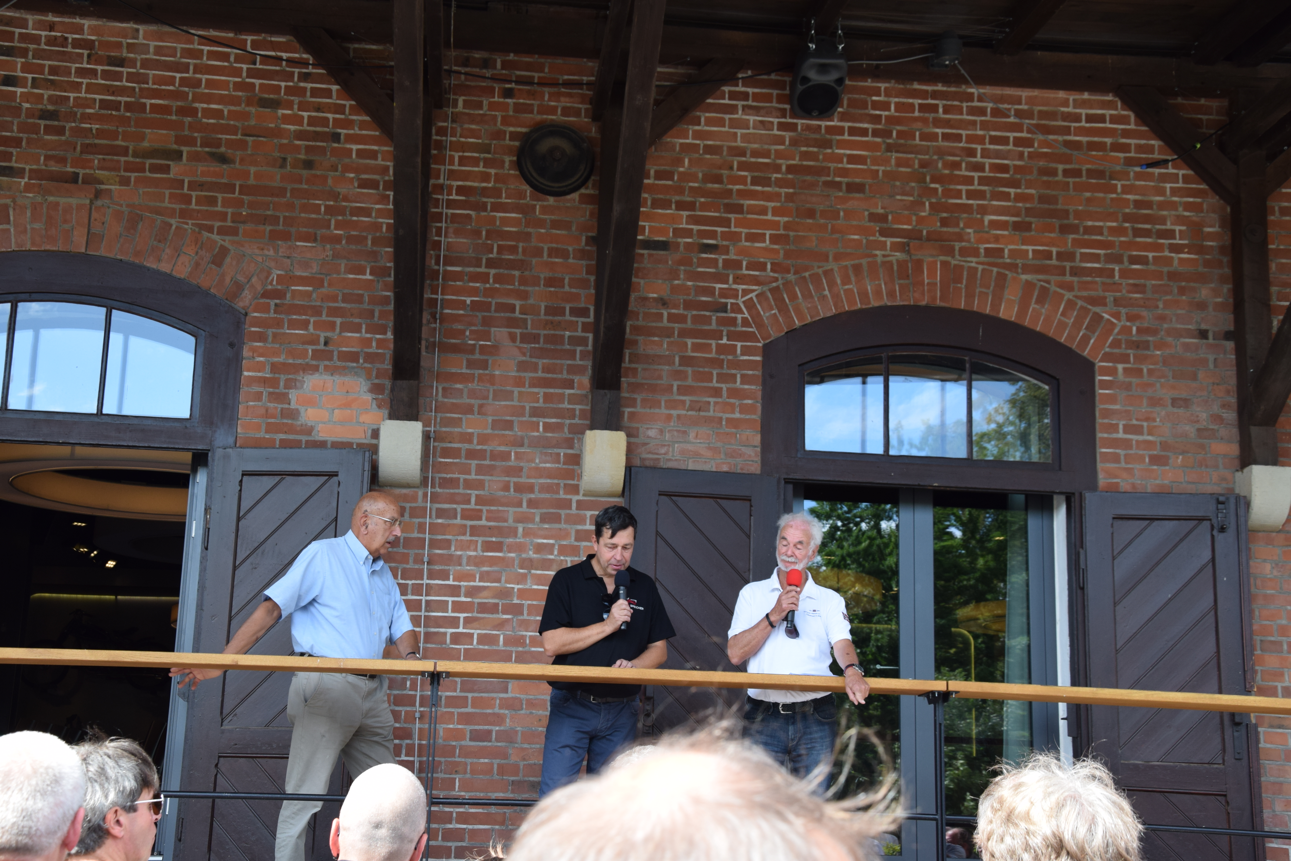 an diesem Wochenende fand der Bikerday am PS.Speicher in Einbeck statt, als Gastredner zur italienischen Motorradentwicklung waren Seniore Laverda (blaues Hemd) und Hans A. Muth (der Designer unserer Katana) geladen. Ich habe die Gelegenheit genutzt und Herrn Muth ein kleines Treffen aufgeschwallert!