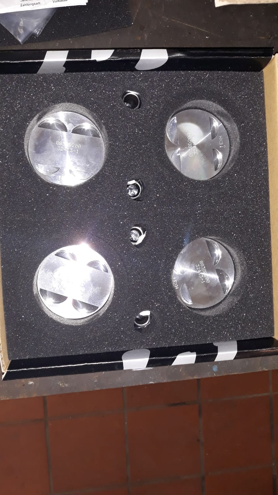 Neue Kolben, Kurbelwelle wuchten, Zylinder planen, alles strahlen und lackieren.