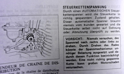 2. Du hast einen automatischen Steuerkettenspanner, - siehe Auszug aus dem Fahrerhandbuch.