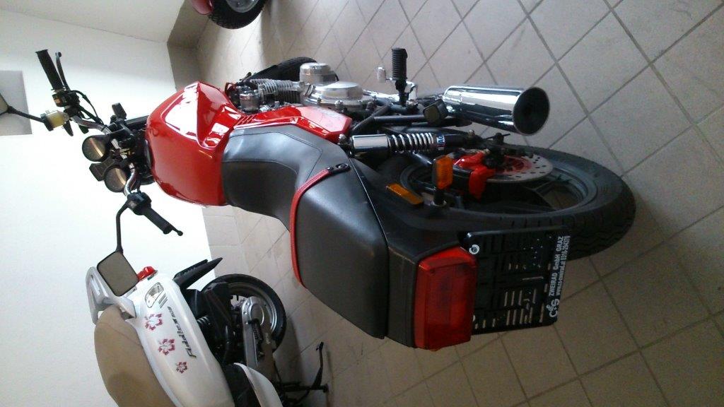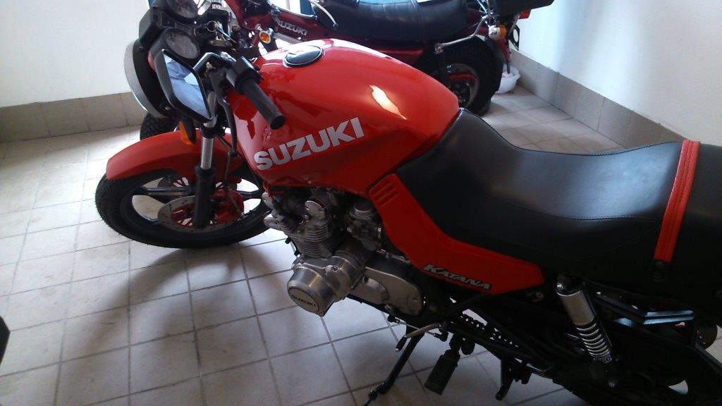 Jedenfalls will ich das nicht und so soll das Ding bei mir stehen bleiben. So besuchte ich in den nächsten 50 Min. 3 Geschäfte mit dem Gedanken mir ein „Retro Bike“ zu kaufen. Nix zu bekommen. Doch beim letzten fand ich Sie. KV gemacht und angezahlt. Freitag wird geholt. Suzuki GS 500 M Katana aus dem Jahr 1981. Letzten Winter komplett zerlegt und neu aufgebaut (War Winterarbeit denn die FA wollte es als Ausstellungsstück behalten) .