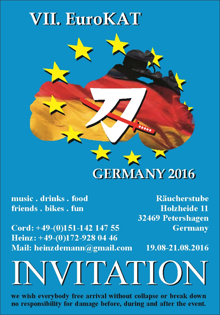 Nach der geilen Veranstaltung am letzten Wochenende möchte ich die Truppe gern wiedersehen. Da ich noch nie auf ner EuroKAT war, gebt mir als Rookie bitte mal ne Info. Danke.