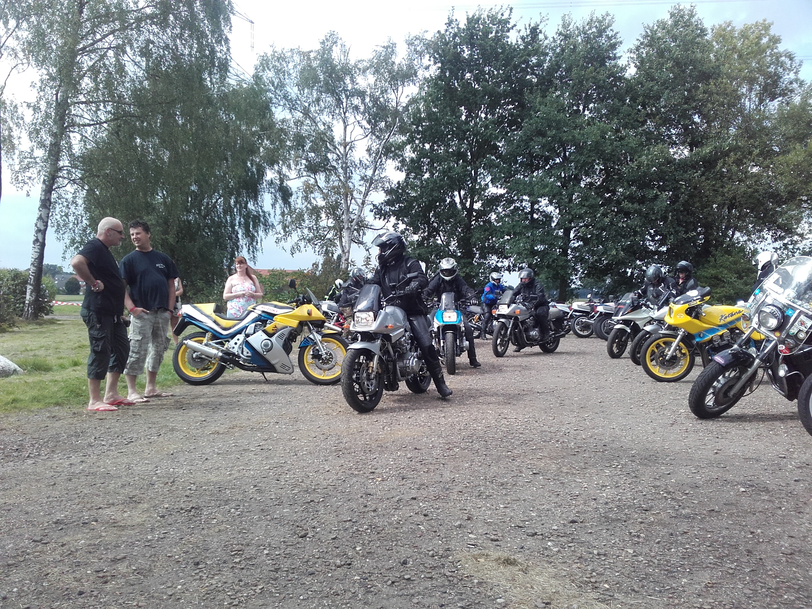 verdammt, hat wieder nich geklappt mit dem komplett trockenen Katanatreffenwochenende seit 2012, kurz nach dem abrollen vom Platz ein Regenschauer und 15Km nasse Straße.