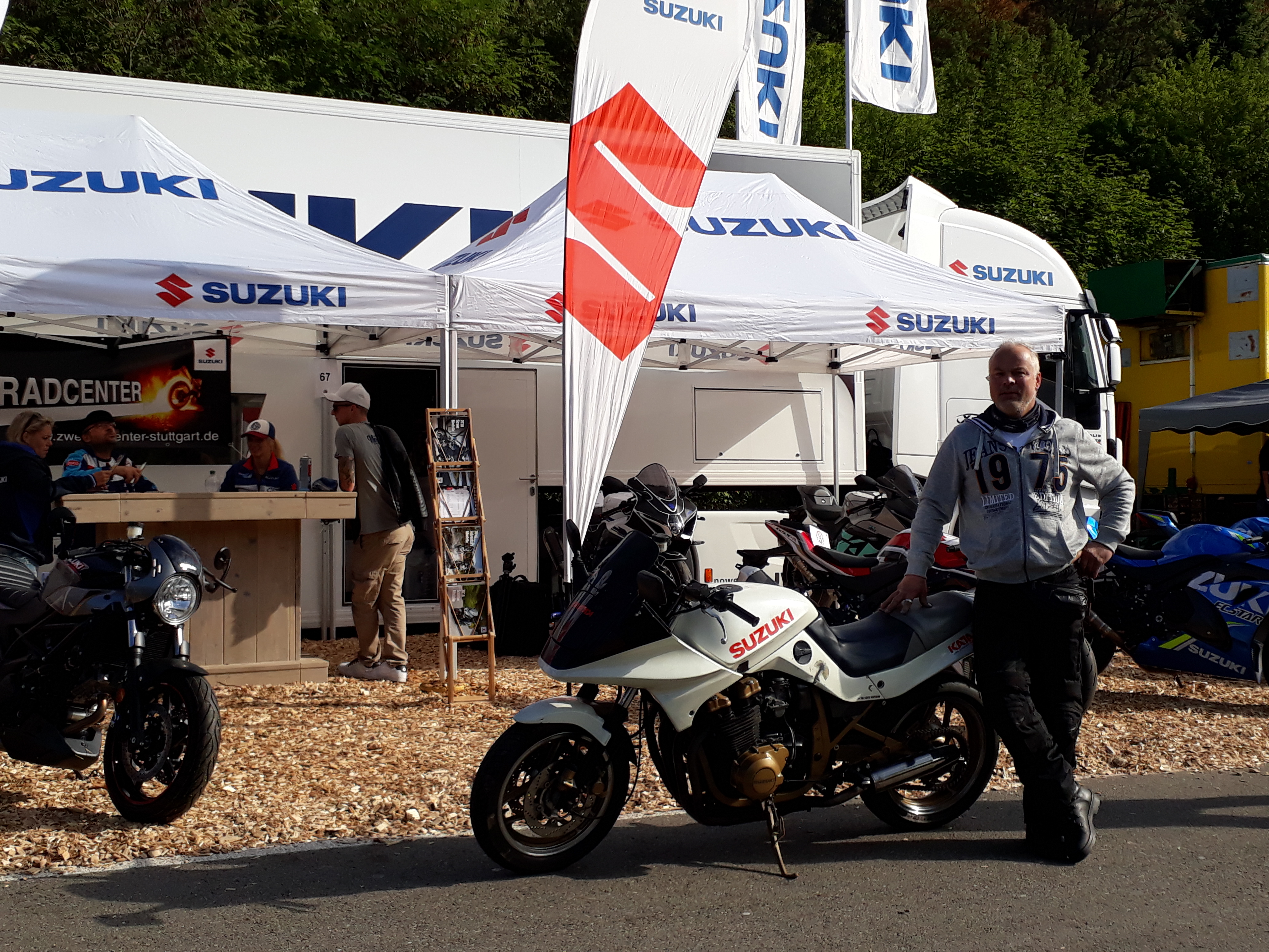 War das erste mal im Glemseck 101, genau meine Veranstaltung. Lauter Bekloppte. Leider bestand das Gros aus BMW. Wusste gar nicht, daß es soviel davon gibt. Aber es waren ja 3 Katana, meiner incl da. Ach ja, ne Bimota SB4 auch.