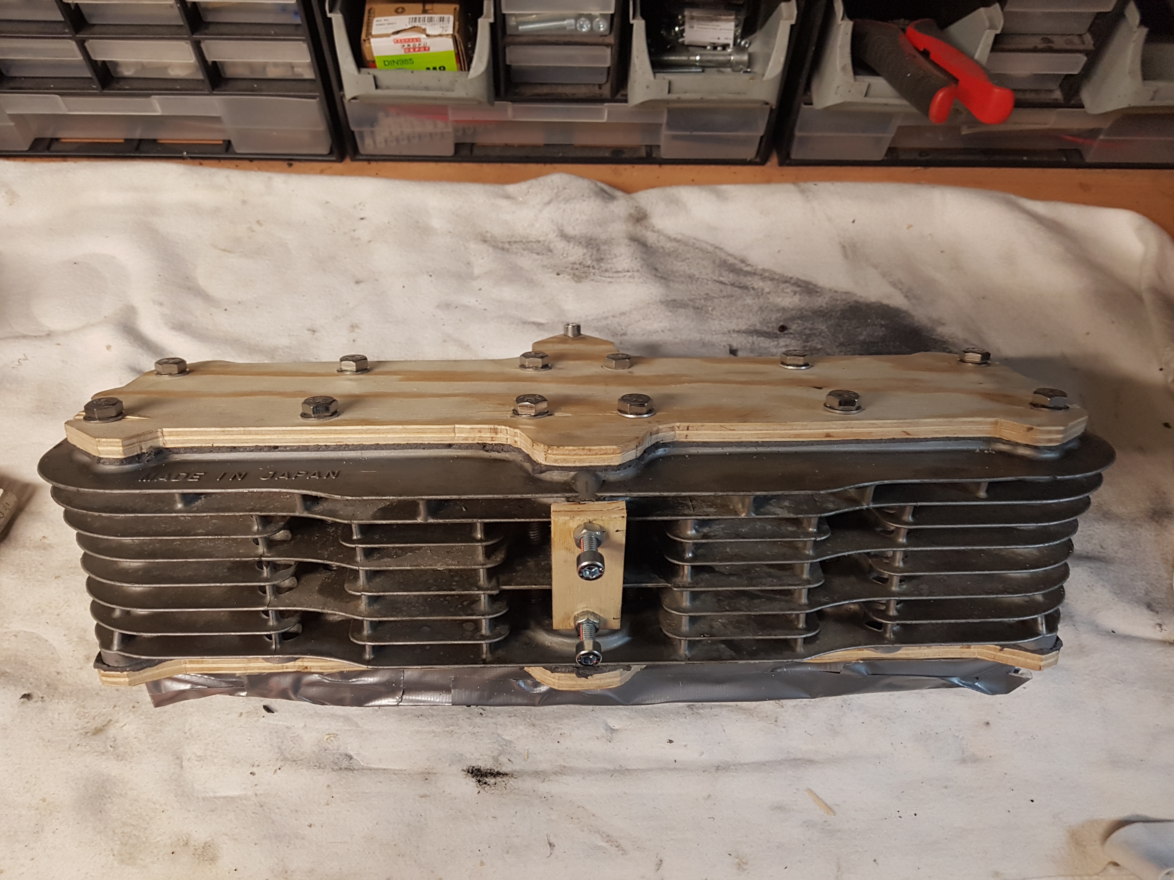 Meinen anfänglichen Plan den Block nicht zu trennen, habe ich nun doch verworfen und den ganzen Krempel zu Ingo Wrubel gebracht. Nach erster Sichtung ist der Kopf i.O und kann so weiterverwendet werden. Die Getrieberäder für den 5. Gang haben Pitting und werden ersetzt. Kurbelwelle, Nockenwellen etc. lt. Ingo alles gut. Zylinder werden aufgebohrt und REC Kolben für 1170 ccm kommen rein. Grosse Ölpumpe war schon drin und der ganze leere Block ist jetzt beim Strahlen, damit ich ihn danach lackieren kann. Die Seitendeckel sind schwarz-matt kunststoffbeschichtet. Ingo macht nur leichte Bearbeitung, weil ich nicht auf Spitzenleistung aus bin, sondern mehr Wert auf Drehmoment lege. Mal sehen, ob dann noch die andere Zündung ins Budget passt. Danach ist alles von Grund auf neu und ich habe hoffentlich die nächsten Jahre motorseitig Ruhe.