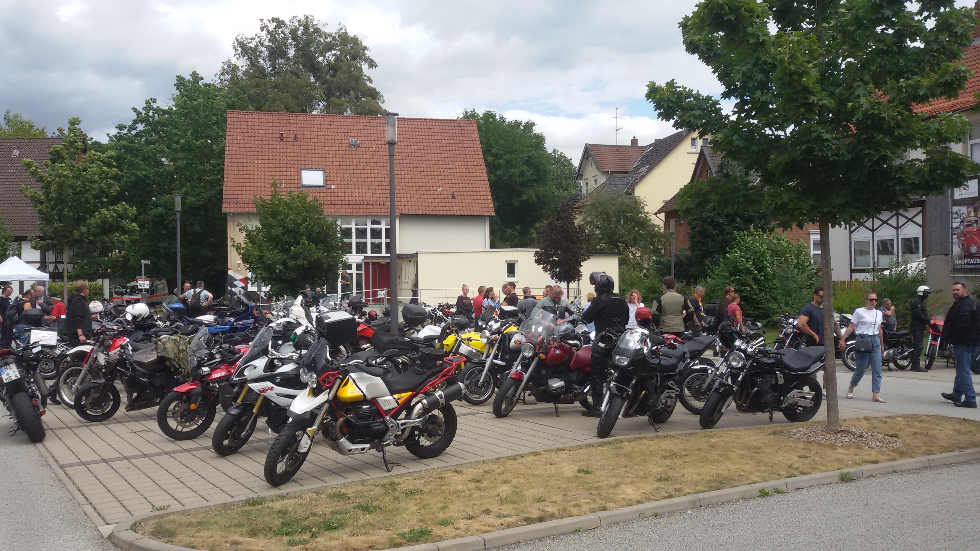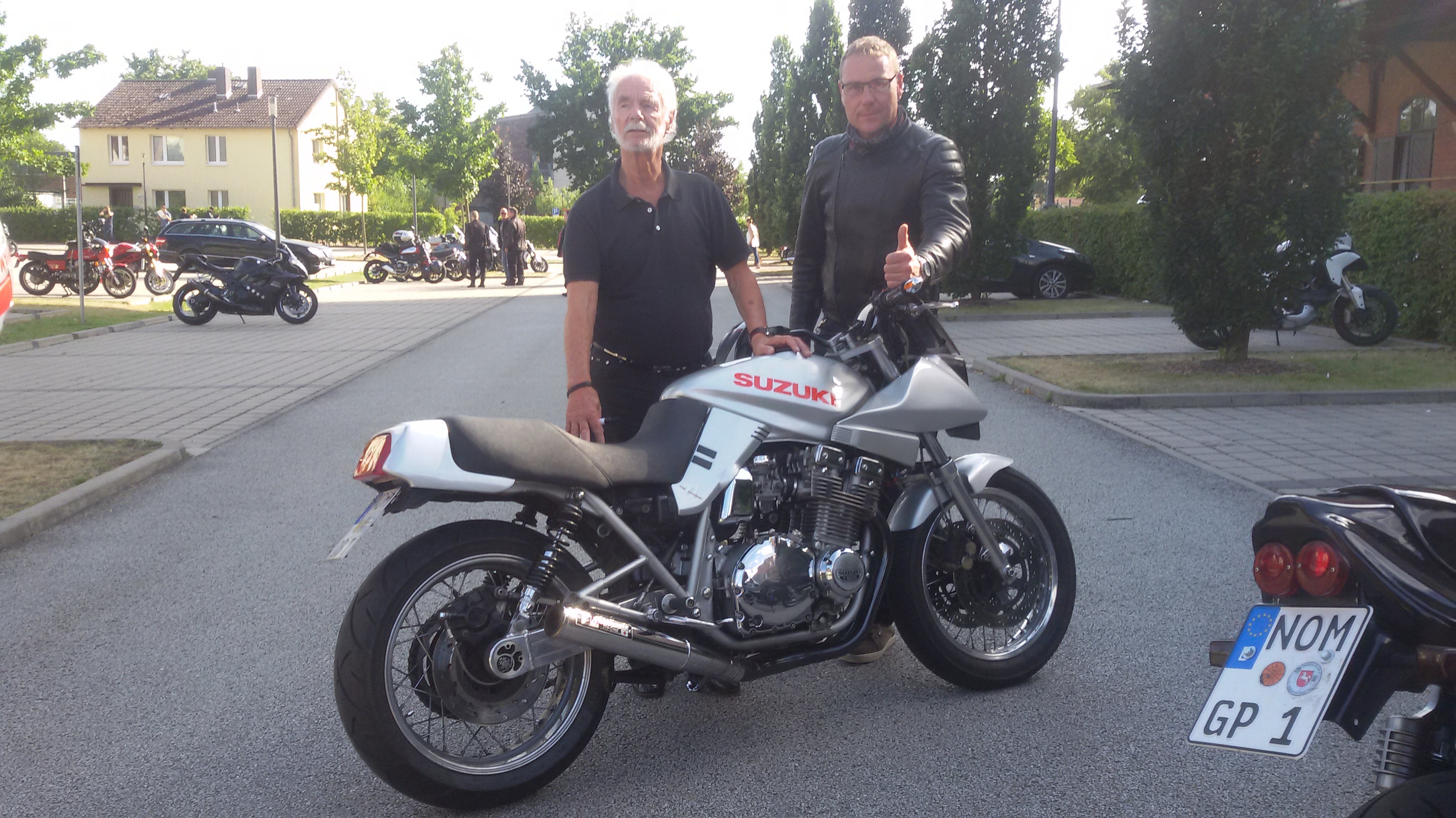 an diesem Wochenende fand der Bikerday am PS.Speicher in Einbeck statt, als Gastredner zur italienischen Motorradentwicklung waren Seniore Laverda (blaues Hemd) und Hans A. Muth (der Designer unserer Katana) geladen. Ich habe die Gelegenheit genutzt und Herrn Muth ein kleines Treffen aufgeschwallert!