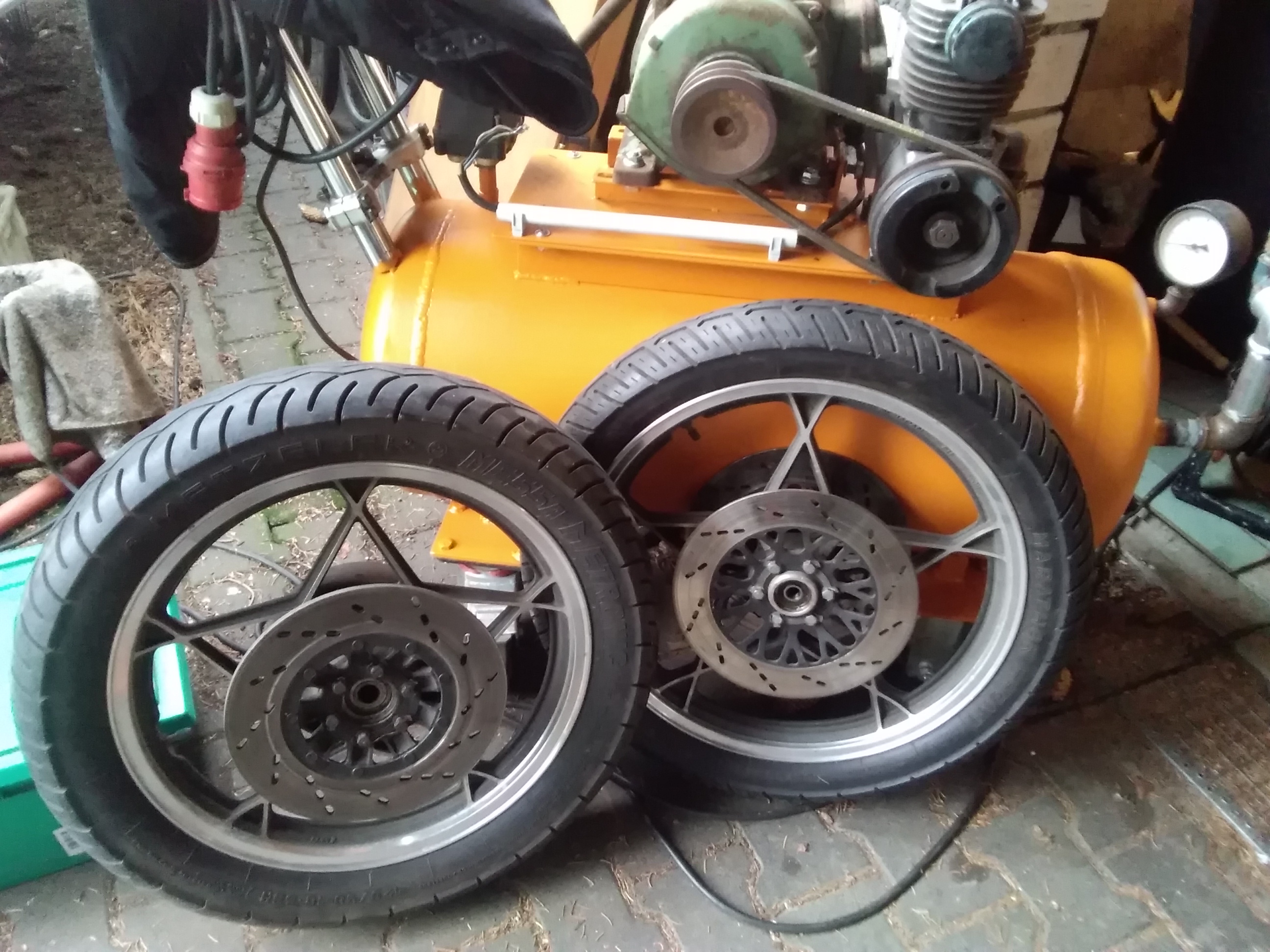 yippi! So jetzt kommt der TÜV und dann die Kosmetik, also die Räder sind nicht im Originalzustand, hab ich aber, muss sie aber aufarbeiten. Dann muss sie neu lackiert werden, Anfang des Jahres ist ziemlich viel Wind durchs Carport und hat ein Krümmer auf die Verkleidung fallen lassen. Glück gehabt, nur Lackschäden. Naja, neue Scheibe brauch ich, die Bremssättel müssen beschichtet werden. Ich weiß gar nicht, wann ich das letzte mal, eine Originale gefahren bin