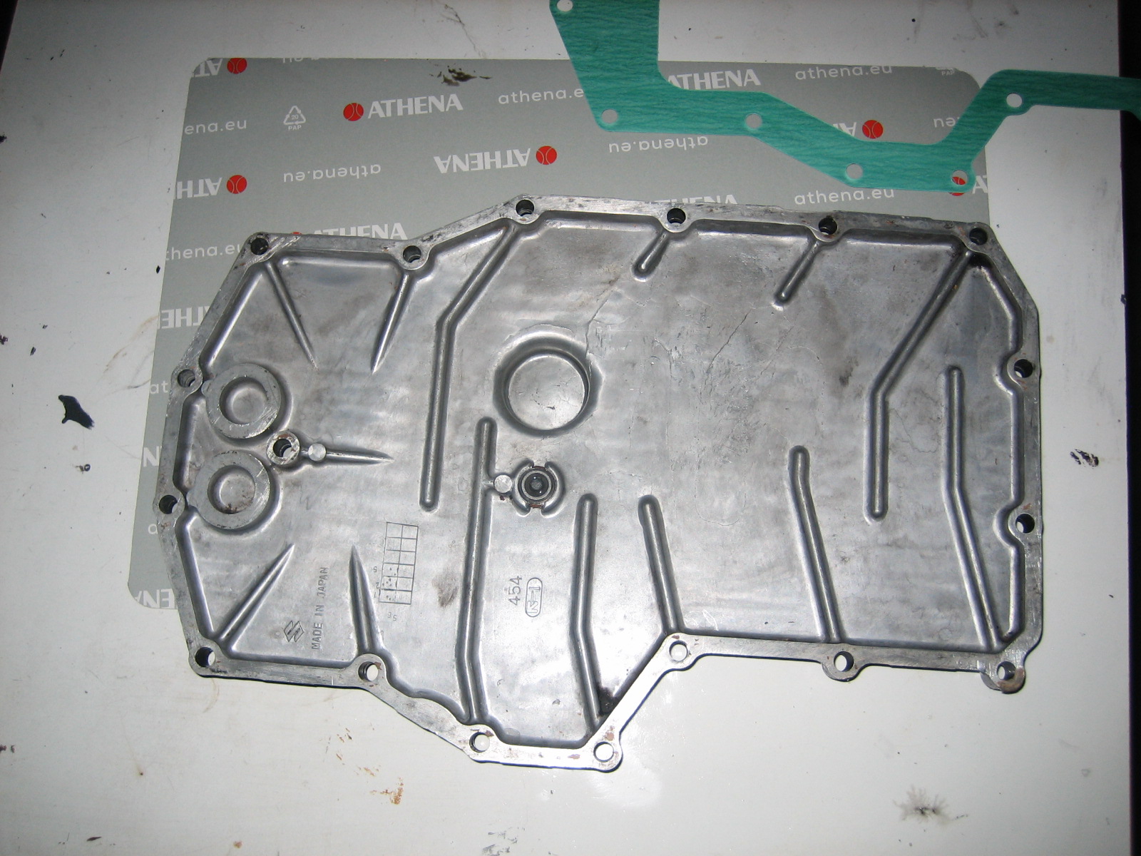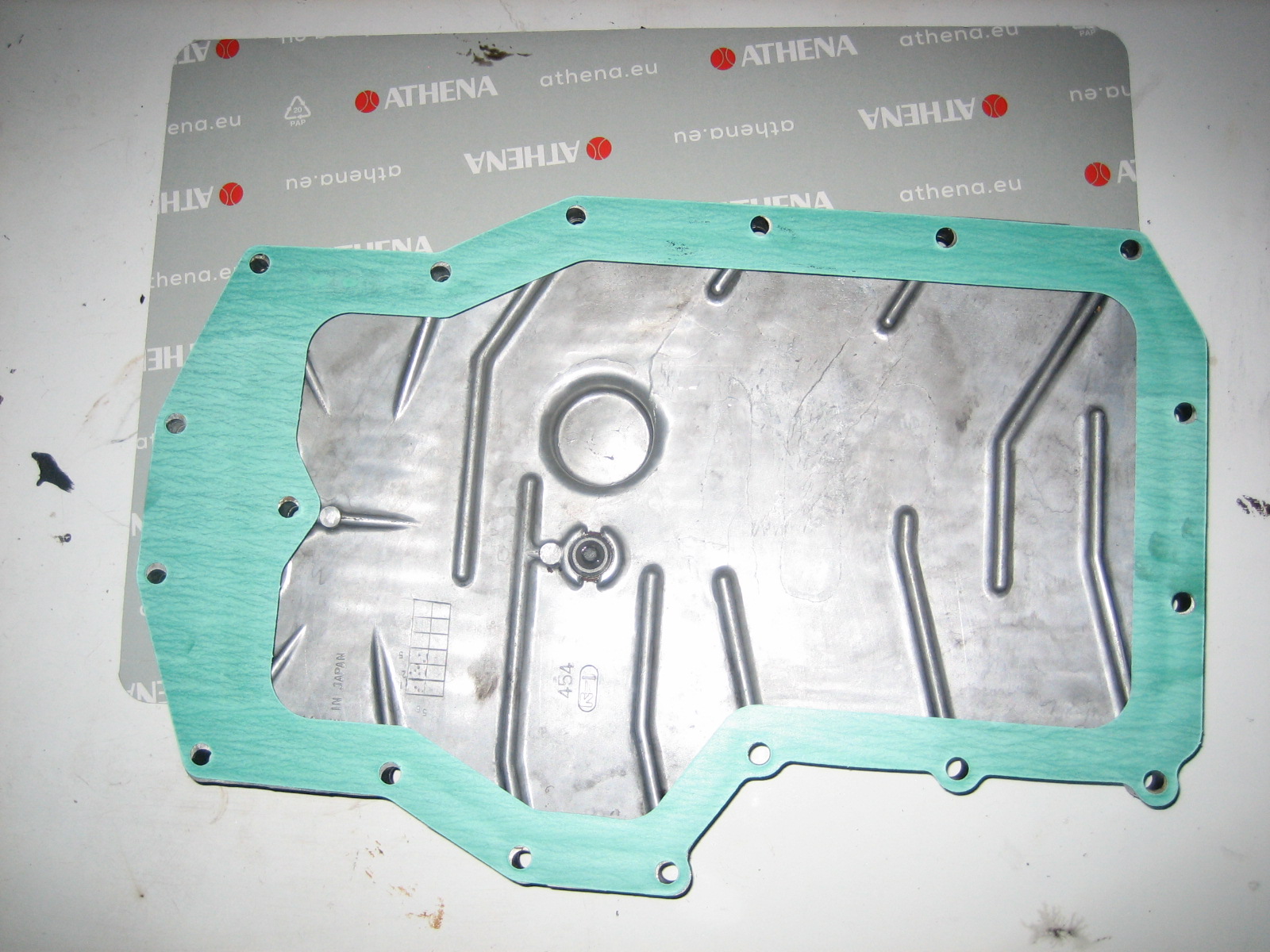 Ich habe gerade die Ölwanne meiner 750iger abgeschraubt. Laut Werkstatthandbuch soll dies alle 10 000 km erfolgen, damit Ölwanne und Feinsieb gereinigt werden können. Die neue Athena-Dichtung liegt bereit. Was mich irritiert sind die beiden Sacklöcher in dem vorderen Teil der Ölwanne. Die neue Dichtung würde diese Löcher vollständig verdecken / abdichten. Ist das richtig? Oder sollten in diese Dichtung Löcher für diese Sacklöcher gestanzt werden? Ich habe zwei Fotos beigefügt, eines von der demontierten Ölwanne, das zweite von der Athena-Dichtung. Leider lässt sich der rudimentären alten Dichtung nicht mehr genau entnehmen, ob diese die Löcher ebenfalls abdichtete. Aber was sollten diese Löcher für einen Sinn haben, wenn man sie durch die Ölwannendichtung verschließt?