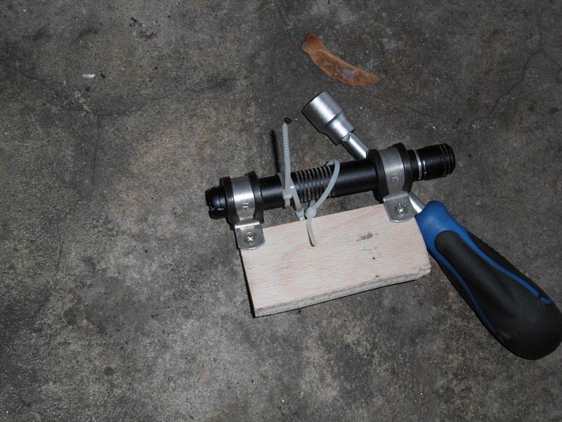 Die Bremsstrebe mit der Distanzhülse mal provisorisch drangesteckt. Muss jetzt in meiner Schraubensammelkiste noch eine passende M12-Edelstahlschraube suchen und finden