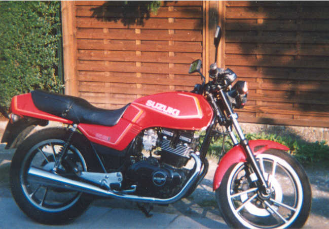 Als ich 18 Jahre alt war hatte ich als erstes eine GSX400E, die aber schon nach kurzer Bekanntschaft mit einem Auto machte und danach nur noch Schrottwert hatte.