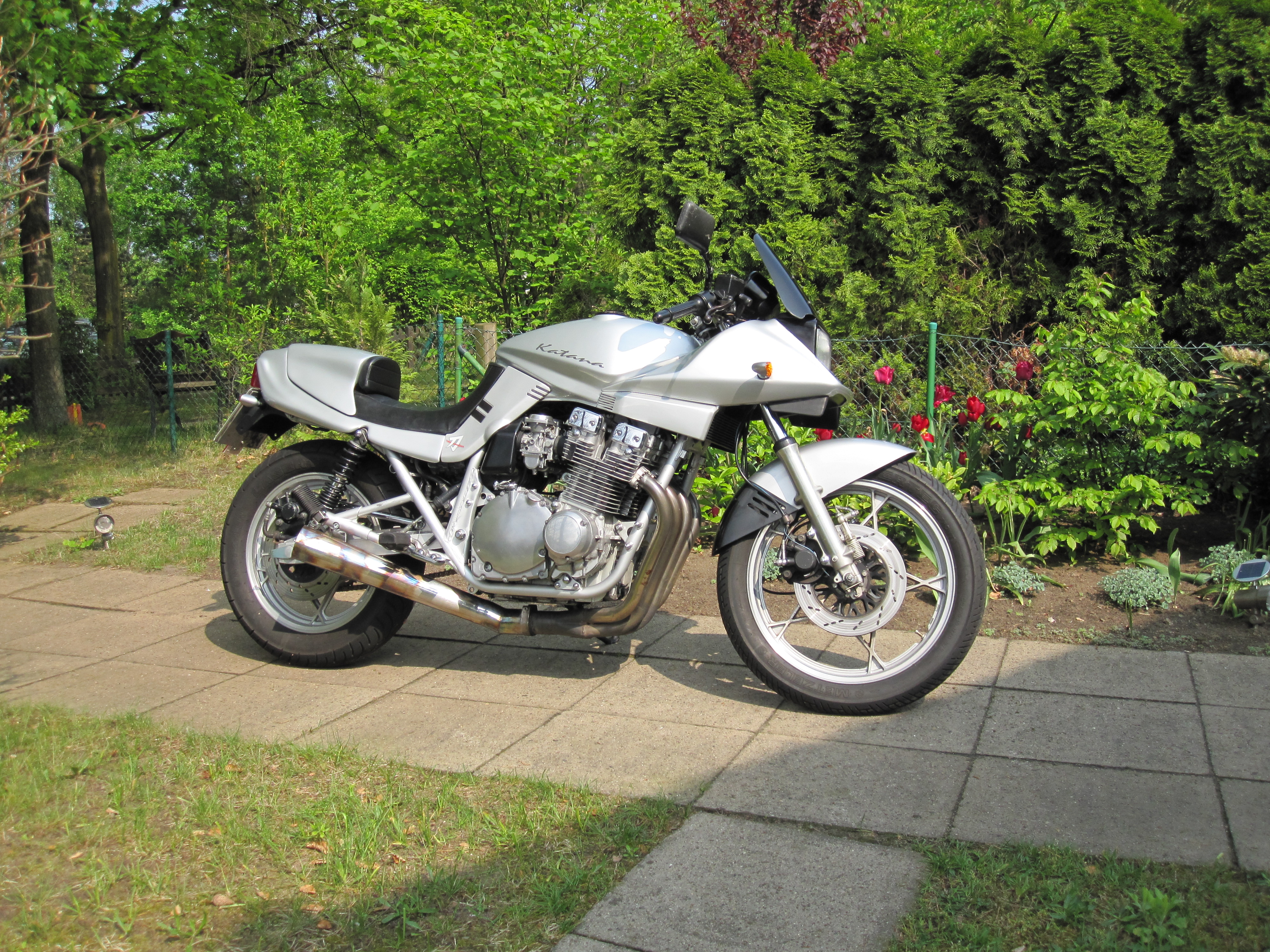 Im Jahr 2001 bin ich dann wieder vom Katana-Virus befallen worden und habe ich mir eine 750er Katana zugelegt, die ich dann erstmal komplett zerlegt und wiederaufgebaut habe ( KLICK )