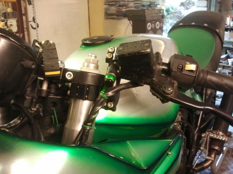 geht nicht weil der originale bremsflüssigkeitsbehälter am lenker sitzt und nicht höher kann weil sonst an die halbschale stösst.