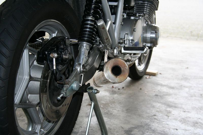 Bevor ich aber fahren konnte musste ich nur noch den Auspuff montieren. Das ganze stellte sich aber als nicht „mal eben gerade so“ heraus. Denn dadurch, dass ich die BolDor-Federbeine verbaut habe, steht die Schwinge etwas tiefer und kollidierte mit dem Endtopf.