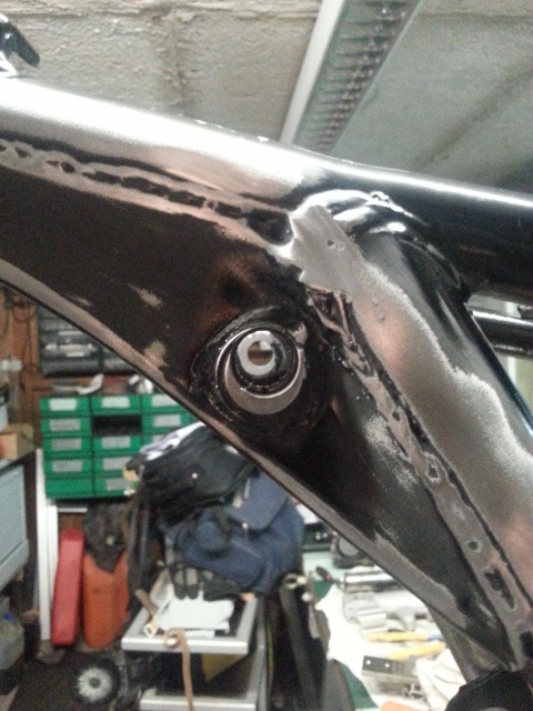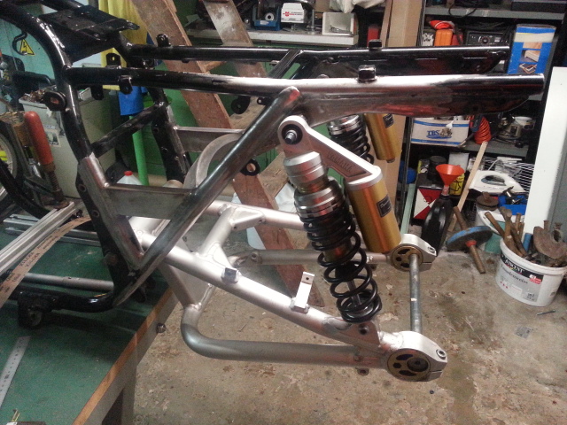 ZRX Schwinge angepasst....sitzt jetzt schön mittig und die Federbeine stehen auch schön gerade