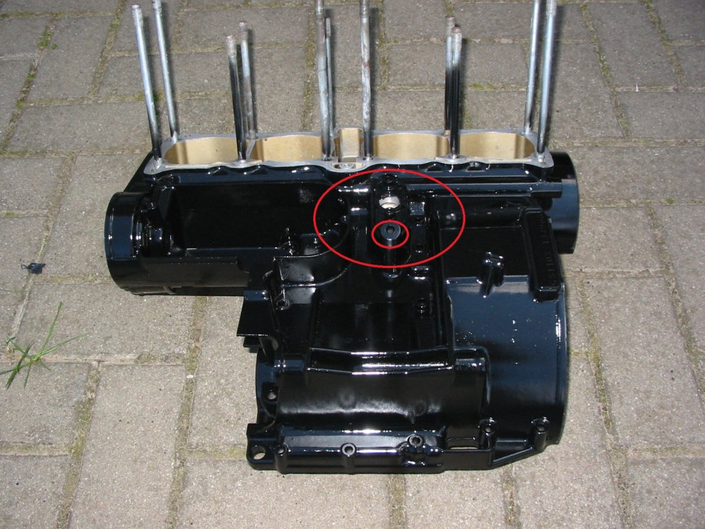 Geht aber auch anstatt der Verschlußschraube rechts über dem Kupplungsdeckel, hat den Vorteil, dass Du keine Bohrung setzen mußt.