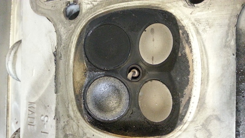 Zylinder Nr. 3 hat wohl etwas viel Öl gehabt...sieht sehr komisch aus....Ventile völlig verölt und verkokelt....Kerze genauso