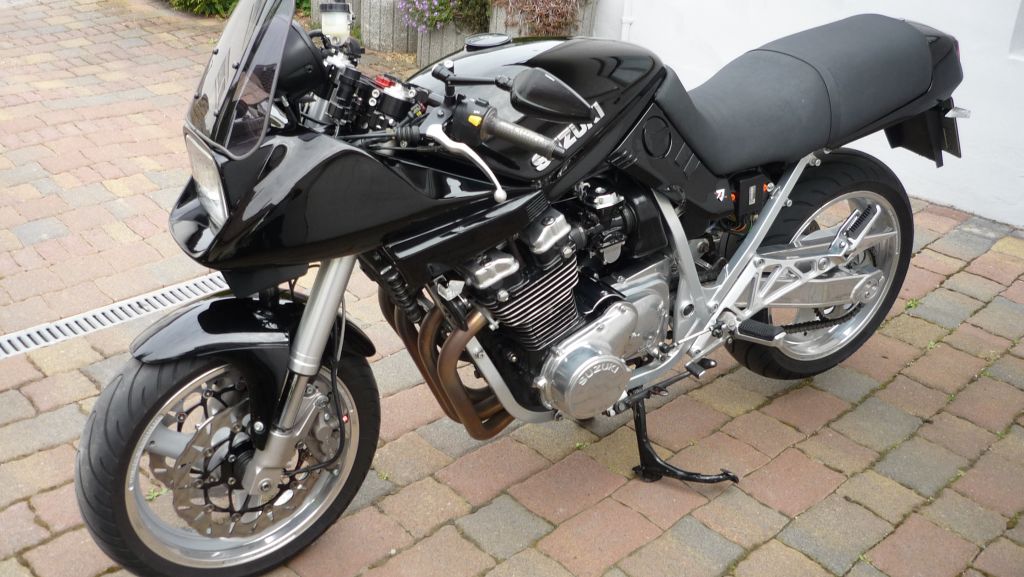 Die schwarz-goldene Waskow GSX mit dem Speerheck wurde ja im alten Forum bereits vorgestellt. Ein Bild davon findest du auch in der Diskussion hier im Forum: "wann ist es noch eine Katana". Bei einigen Umbauten auf Basis der GSX 1400 wird die untere Seitenverkleidung für den Kühler freigeschnitten (dort auf den anderen Bildern zu sehen). Das wirkt nicht ganz so gelungen. Vielleicht muss da ein schmalerer Kühler her.
