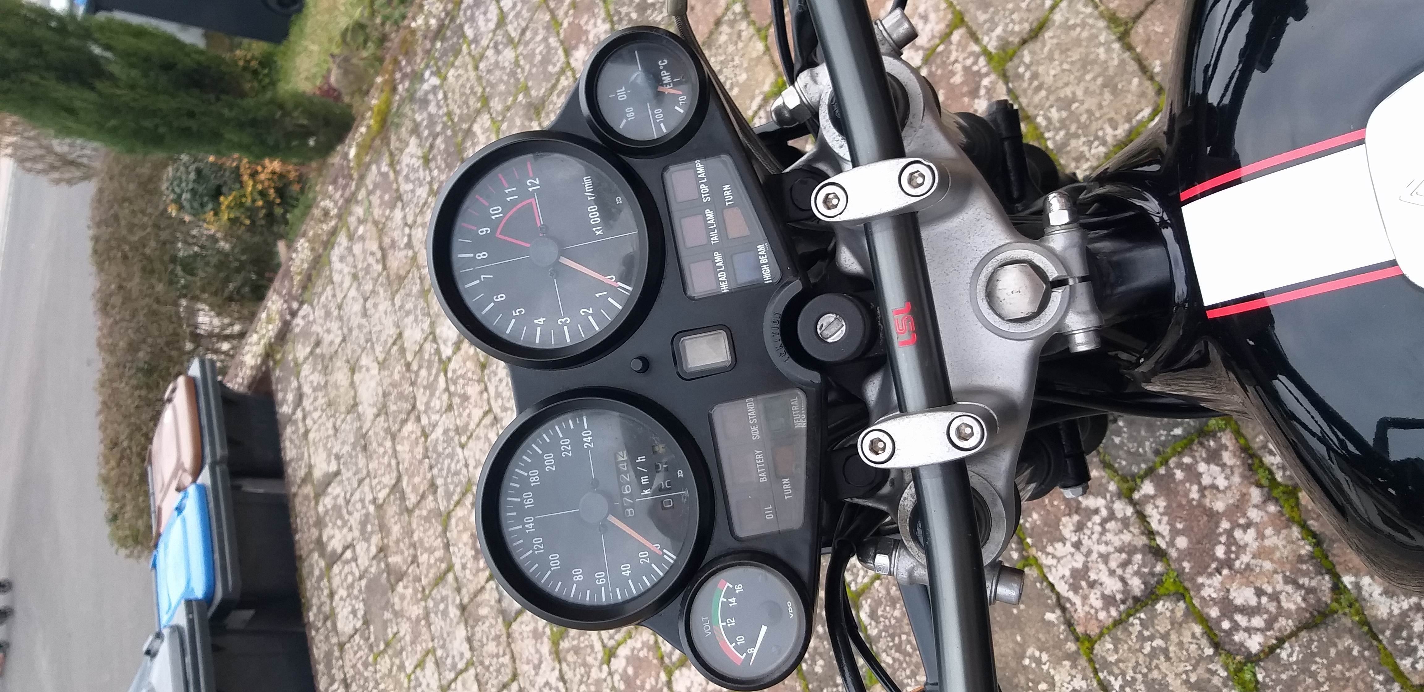 Aber mich überrascht es total, dass ein 1983er Bike Features hat, die ich bei meiner 2006er Speed Triple nachrüsten musste. Die Ganganzeige z. B.