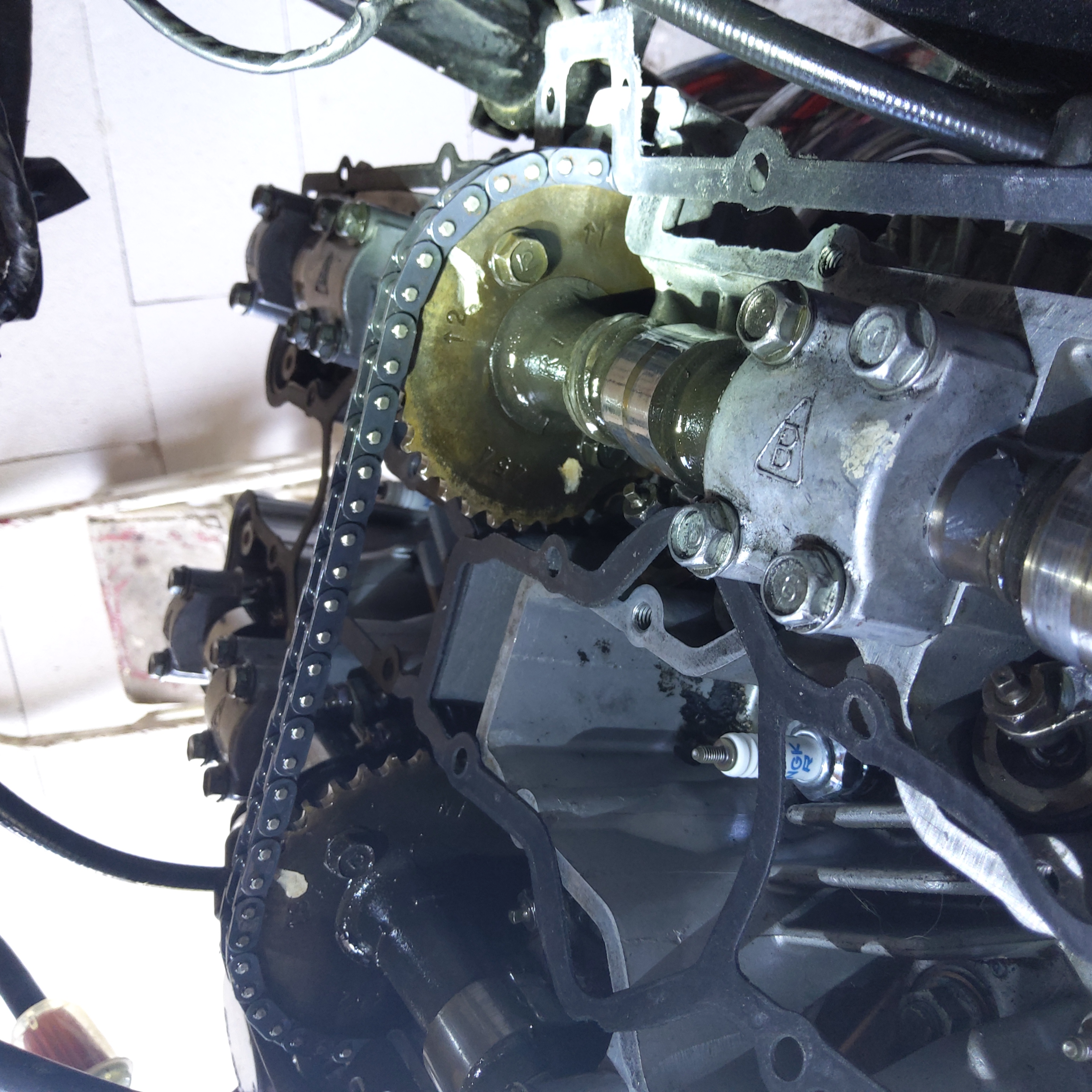 Anschließend den Kettenspanner nach Vorgaben montieren, dann erst den Motor mit Hand drehen und alles Prüfen!