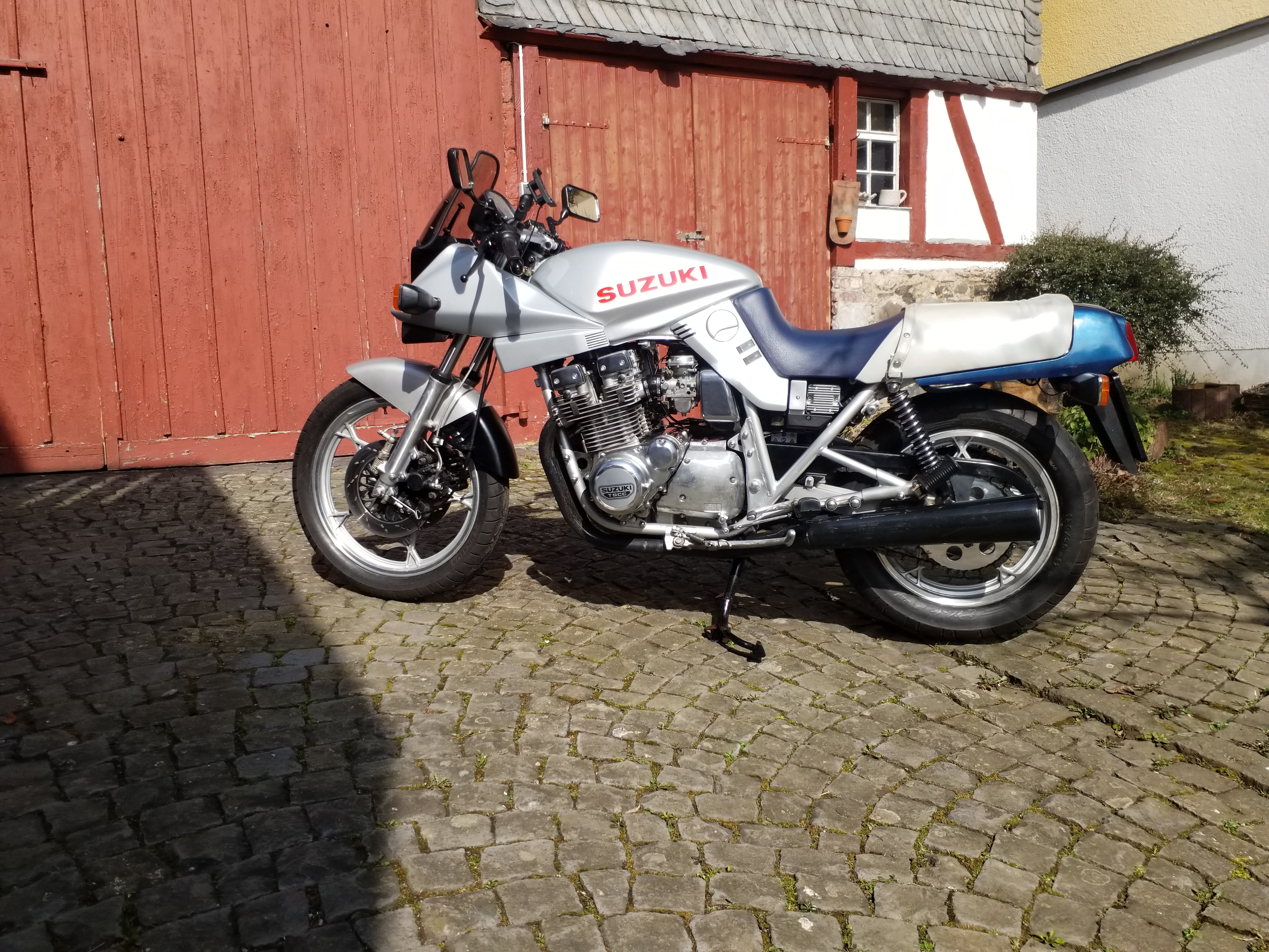 Seit 1984 fahre ich ohne Unterbrechung Motorrad, Schwerpunkt Suzuki luft-ölgekühlt. Aber auch mal eine Ducati Königswelle, die ich 2012 viel zu billig abgegeben habe, bereue ich bis heute!! Ein kleiner Ausgleich stellt jetzt das Projekt mit der 1100er Katana dar, die ist bezahlbar, technisch beherrschbar, und hat mich damals in Franken mit 19 ähnlich fasziniert. Und silbern ist sie im Original ja auch. Stammt aus Erstbesitz, der 76-jährige Verkäufer hat sie 1982 neu gekauft, konnte sich auch nur schwer davon lösen, die Geschichte gefällt mir und ruft nach Fortsetzung.