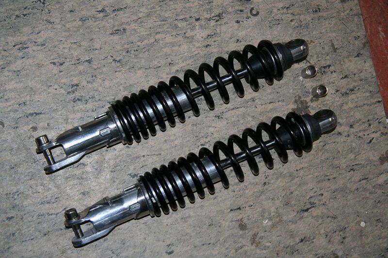 Vor Weihnachten habe ich dann noch ein paar Konis von einer Bol-Dor erstanden, damit das Mopped hinten etwas höher kommt. Die Distanzhülsen für die oberer Aufnahme habe ich dann noch schnell gedreht, sowie die untere Aufnahme passend für die Katana-Schwinge aufgefräst ..